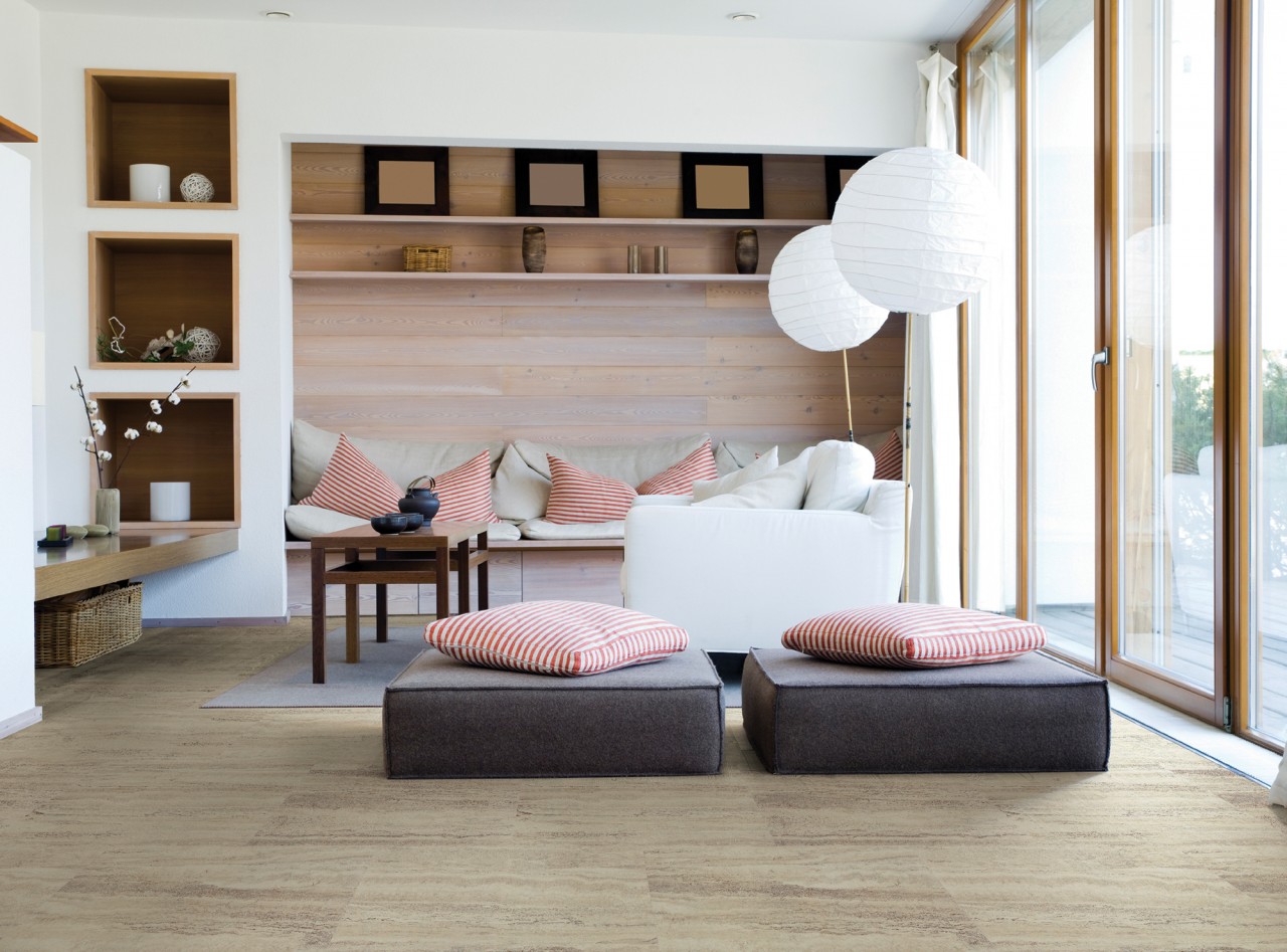 A cork floor provides a comfortable cushion underfoot because it "gives" when compressed. Cork is also a natural thermal and acoustic insulator, which means rooms with cork flooring are naturally warm and quiet.Aesthetically versatile